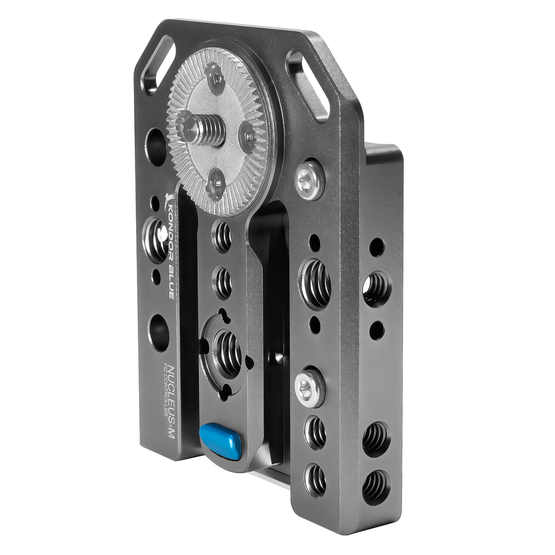 The Nucleus-M has become a go-to industry solution for a robust, yet affordable solution for remote FIZ (Focus, Iris, Zoom) control. However, options for mounting the Nucleus-M controller have been very limited. That's why we designed the KONDOR BLUE Nucleus-M Adapter Plate. It provides a wide range of mounting options that make it much easier to configure. The ARRI-style rosette allows for mounting to female rosettes with the included 6mm bolt, or the bolt can be removed before mounting to the Nucleus-M controller to receive a 6mm bolt into the rosette.