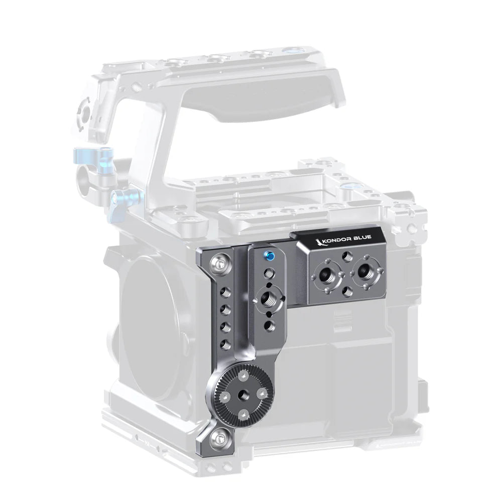 - Top U-Plate: Dual NATO rails with built-in safety stops, ¼”-20 and ARRI ⅜”-16 threads, bubble level, and accessory wings ideal for Kondor Blue Mini Quick Releases and Wireless Transmitters.
