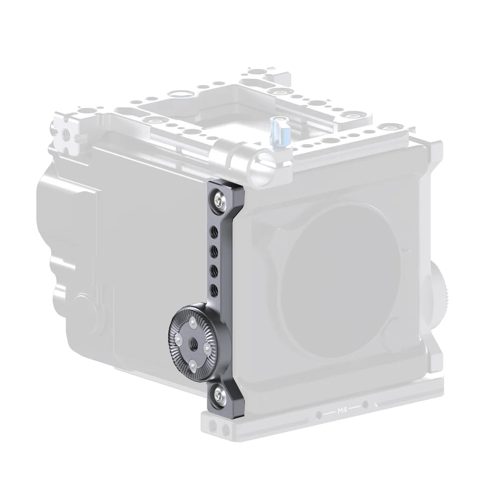 - Side Plates: Symmetrical Rosettes, Vertical NATO rail on left plate with Safety Pins, 1/4"-20 and ARRI 3/8"-16 threads.