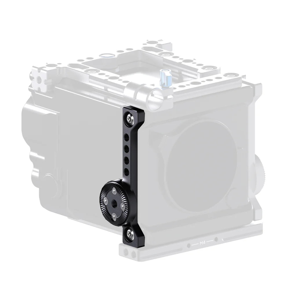 - Side Plates: Symmetrical Rosettes, Vertical NATO rail on left plate with Safety Pins, 1/4"-20 and ARRI 3/8"-16 threads.